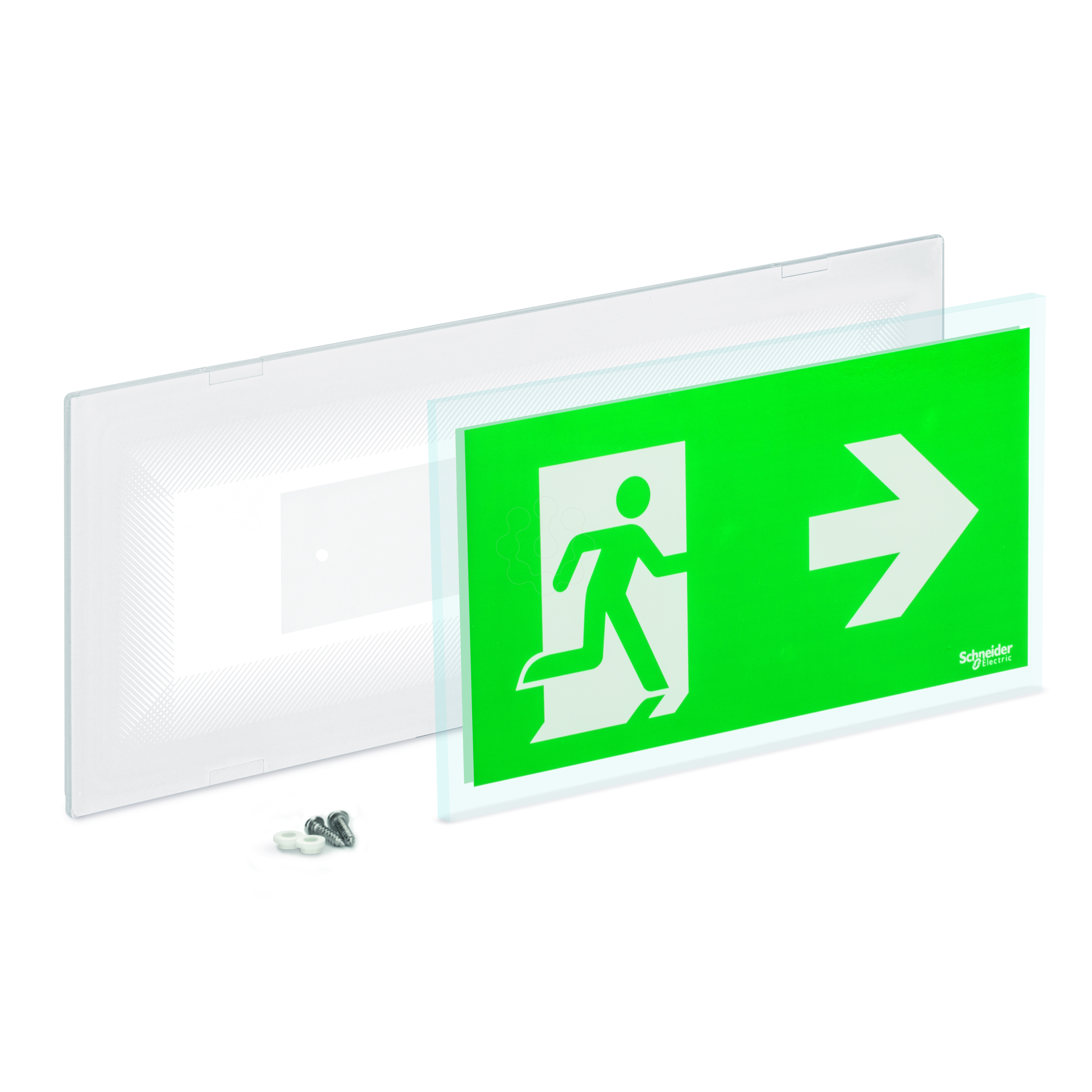 Kit de sinaletica de saída para instalação encastrada, Exiway TREND, Para baixo -Para baixo, rectangular, visibilidade de 25 m