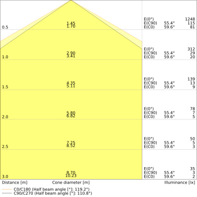 | Cor da luz de acordo com EN 12464-1 | Branco quente <3300 K |