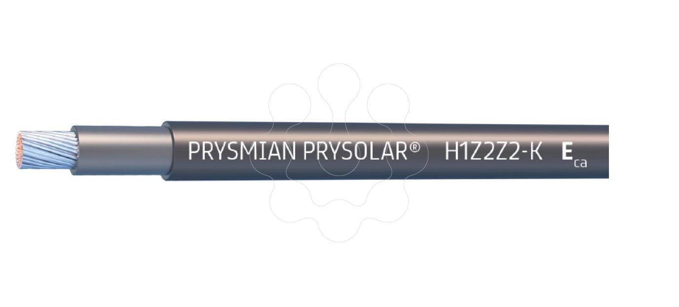 Prysmian PRYSOLAR 1,8 kVdc H1Z2Z2-K 1x6 PT BOB 500 - Prysmian PRYSOLAR 1,8 kVdc H1Z2Z2-K 1x6 PT BOB 500 - Cabo PRYSOLAR do Prysmian Group RESISTENTE À INTEMPÉRIE, para instalações fotovoltaicas, VIDA ESTIMADA 30 ANOS. Tipo H1Z2Z2-K com condutor de cobre flexível estanhado, tensão assignada 1,5/1,5 kV em corrente contínua (máximo 1,8/1,8 kV). Isolamento e bainha termoestáveis zero halogéneos com ELEVADAS CARACTERÍSTICAS ELÉTRICAS E MECÂNICAS. ISENTO DE HALOGÉNEOS, NÃO PROPAGADOR DE CHAMA, COM BAIXA EMISSÃO DE FUMOS. Isolamento Duplo (classe II). Resistência Máxima AD8 contra a acção da água + ensaio especial Prysmian submerso e em tensão contínua WET-I 1500 (1500 ciclos, 1,8 kV DC, temperatura da água 70 °C). Certificado Bureau Veritas. Classe CPR de reacção ao fogo Eca. Desenhado de acordo com as normas EN 50618 e IEC 62930.